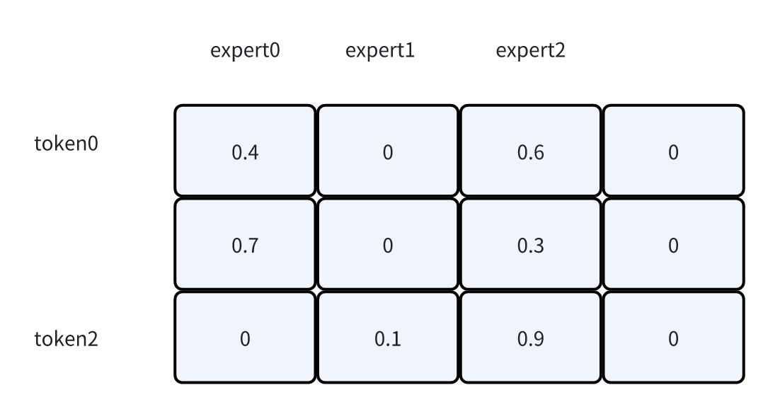 启动padding后,expert1就不只有1个token,而是会选择token0和token2(按照topk选的)