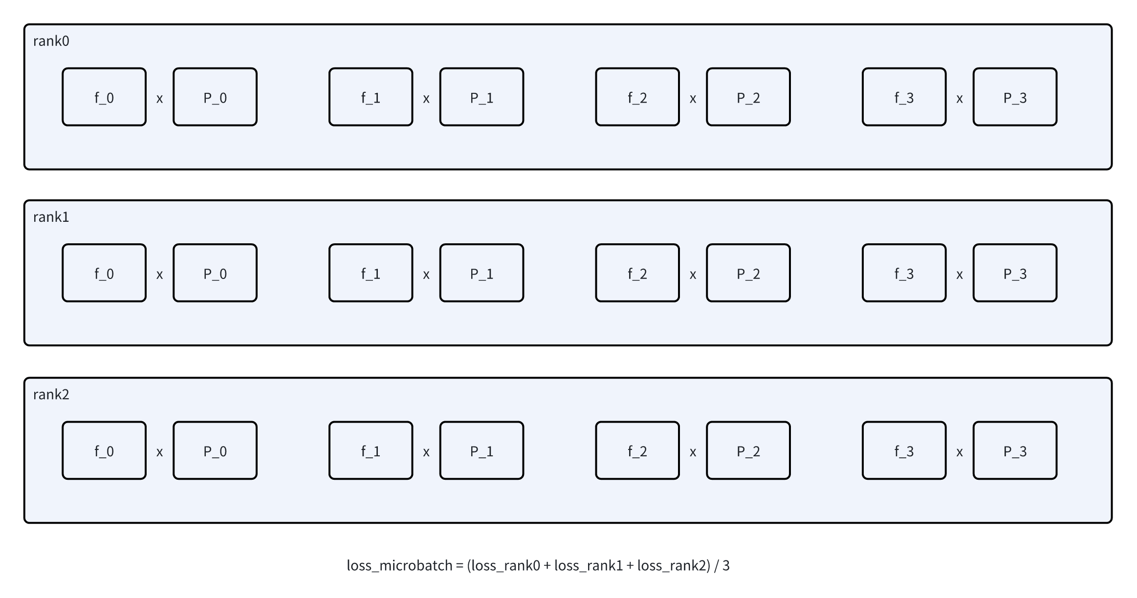 而实际希望做的是global load balance,希望计算全局的P和f。而全局的P和f需要做all reduce,这里有一个技巧,如图2。先all-reduce f,计算全局的F。此时所有rank的F都相同,就可以作为公因数提出来,用local P和global F来计算了