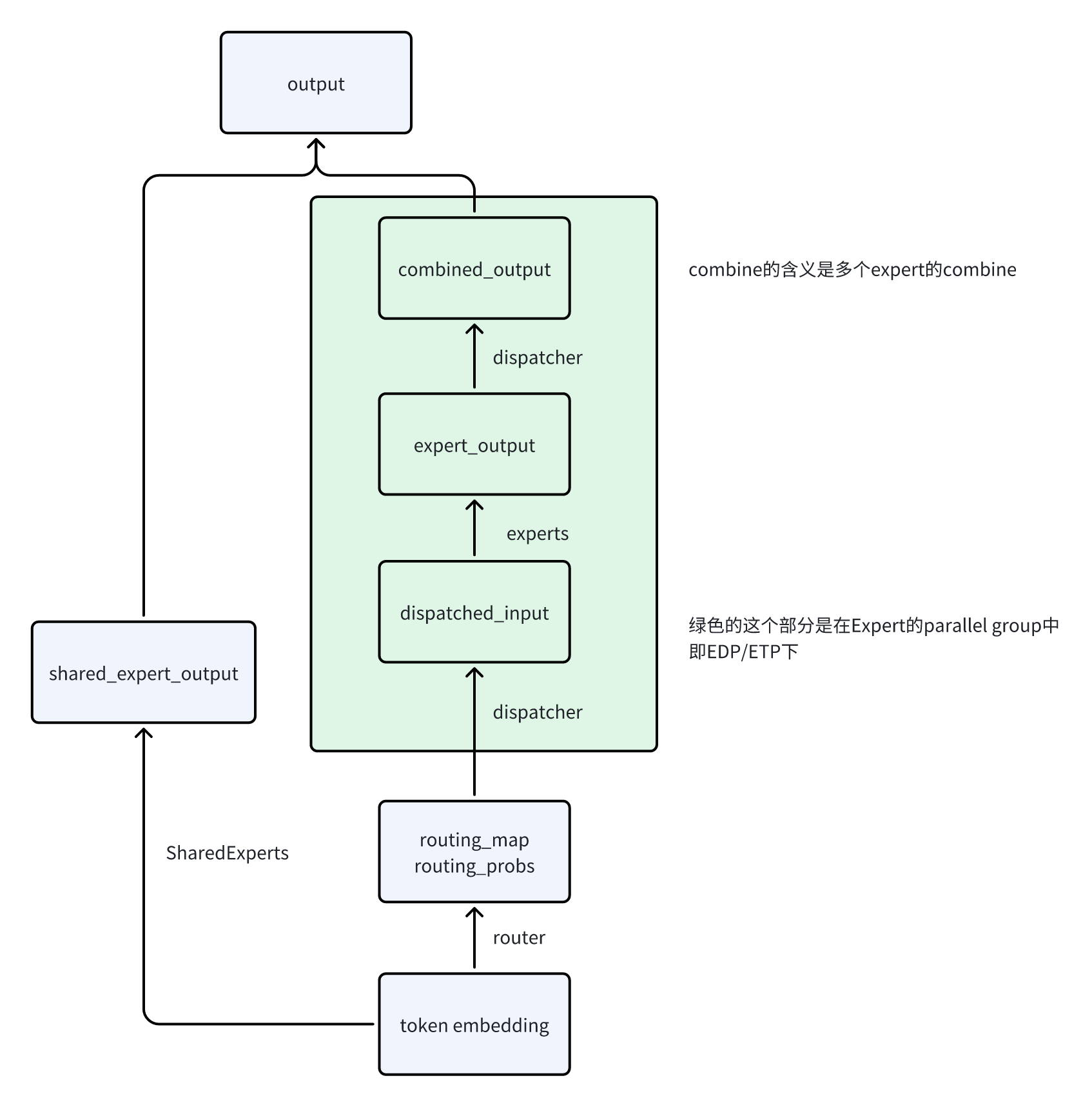 因为我也是头一次接触MoE相关的,同时并没有对比过其他系统(DeepSpeed等)的实现,所以这块知识单纯讲一下MegatronLM中的一些细节。