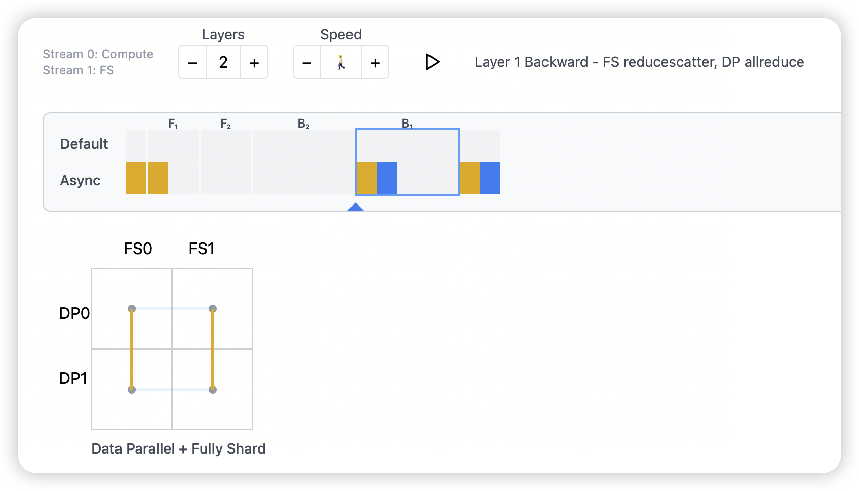 only for the last microbatch’s backward, I apply an allreduce of gradients across the DP axis. Meaning: nosync is applied for DP, but not FS.