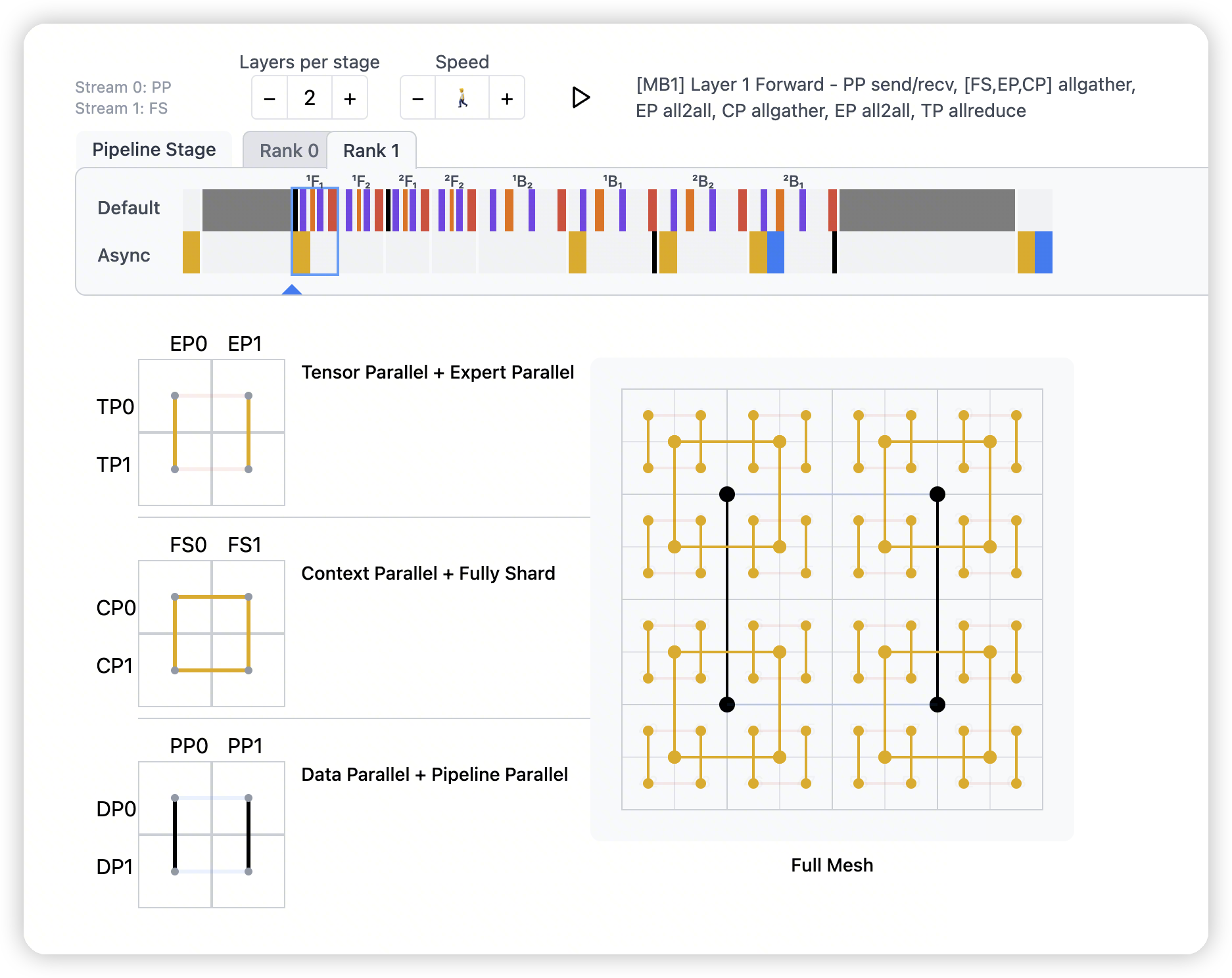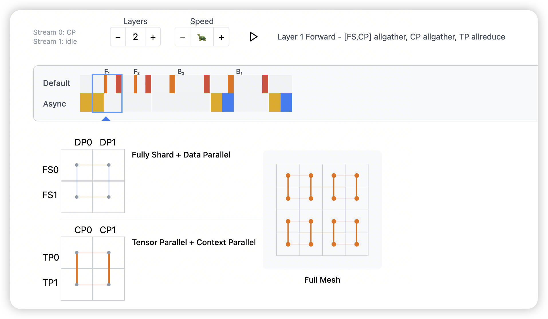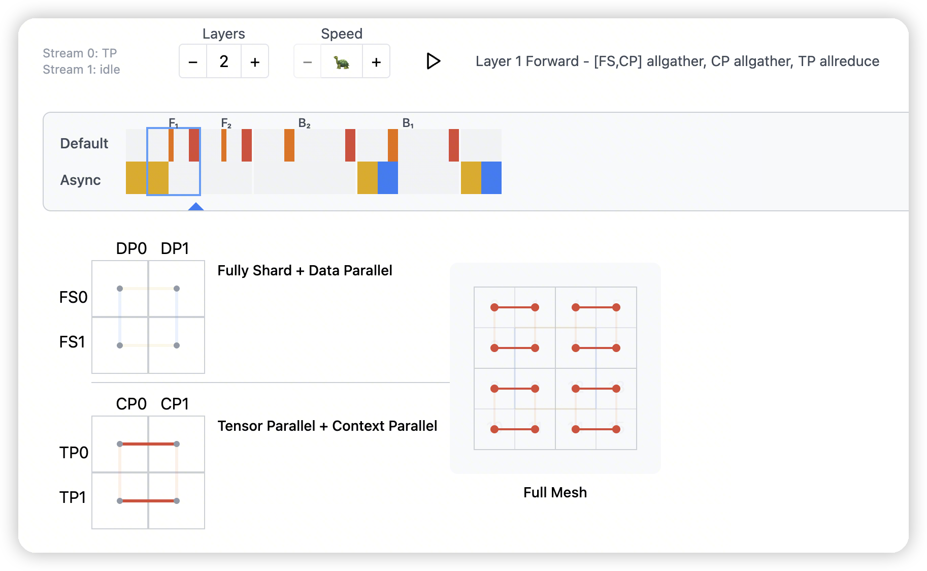 - op synchronization. This is similar in functionality to TP – at specific execution points, activations have to be shared across each CP group.