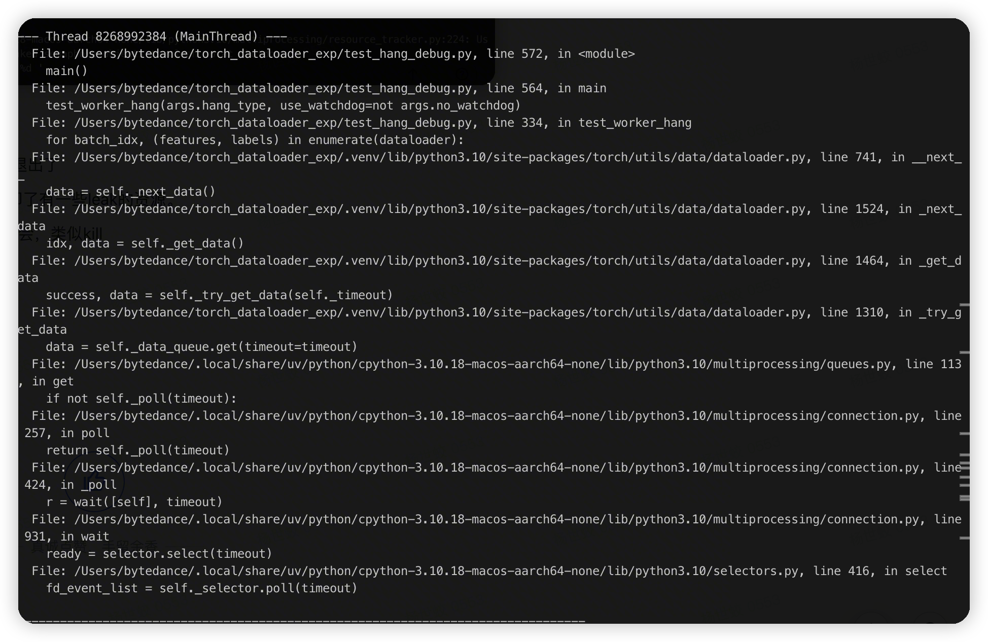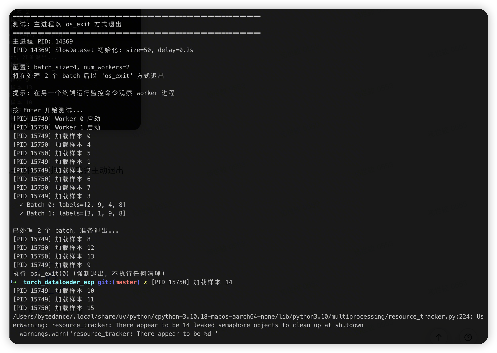 不过这里在退出的时候resource_tracker打印了有一些leak的资源。