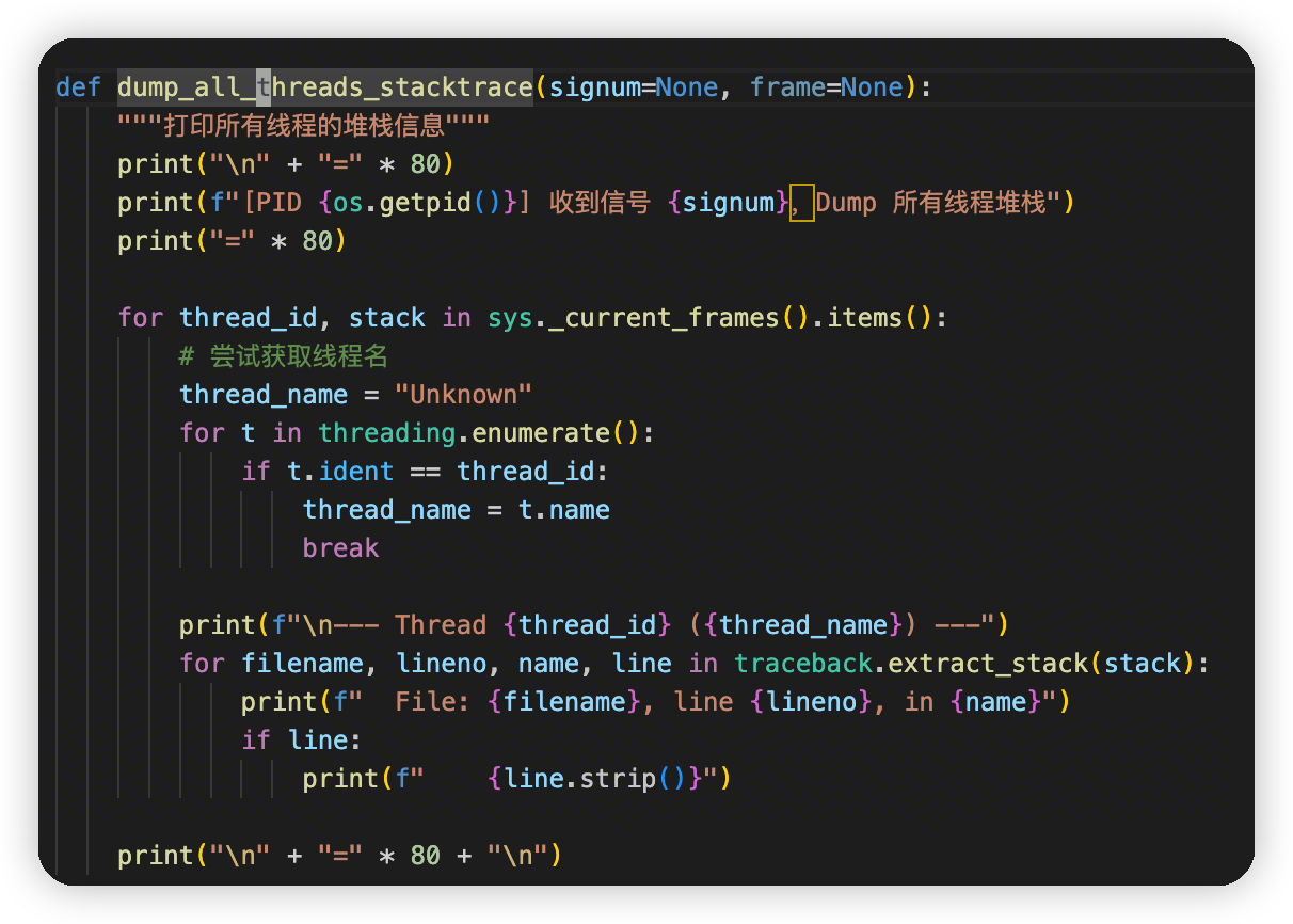 相当于是自己实现的faulthandler。打印的日志更加详细。