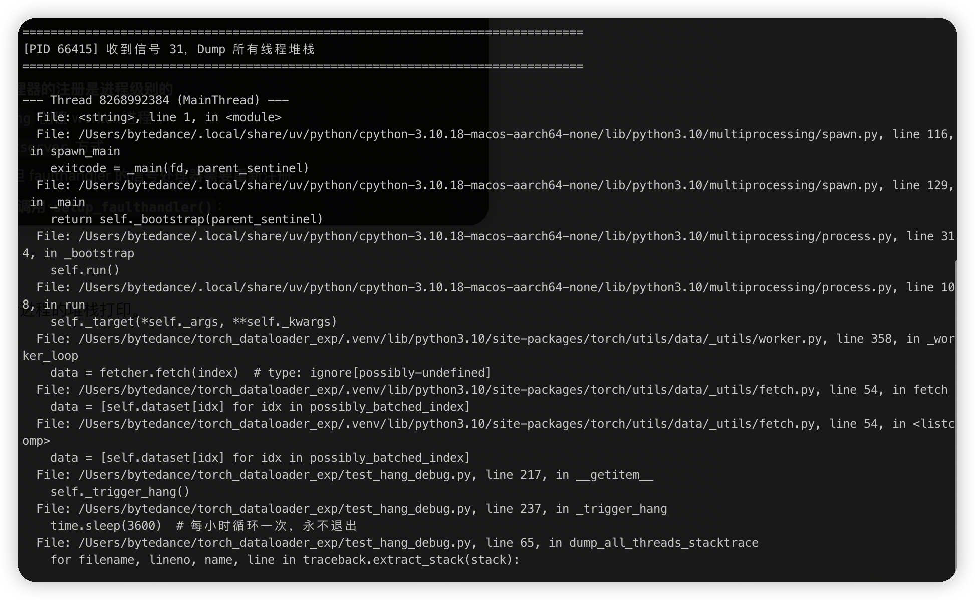 - main中有一个watch dog,如果过长时间没有执行loop了,会打印一下所有线程的堆栈,看一下当前卡在哪里了。