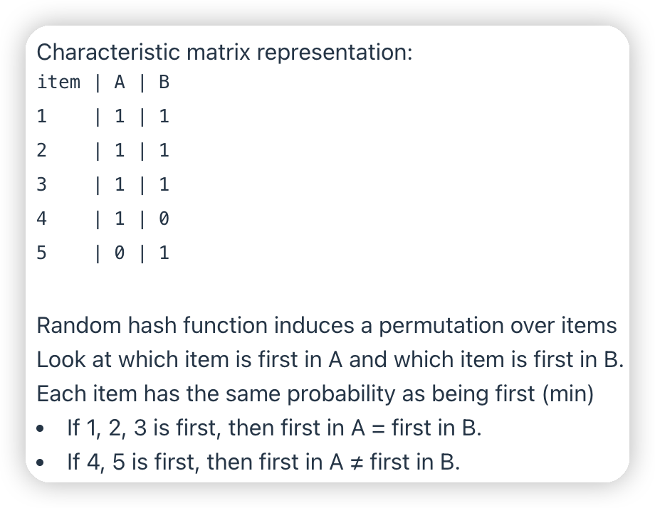 此时我们就希望让jaccard similarity大于阈值的文档尽量hash到一起,jaccard simiarity小于阈值的文档分散开