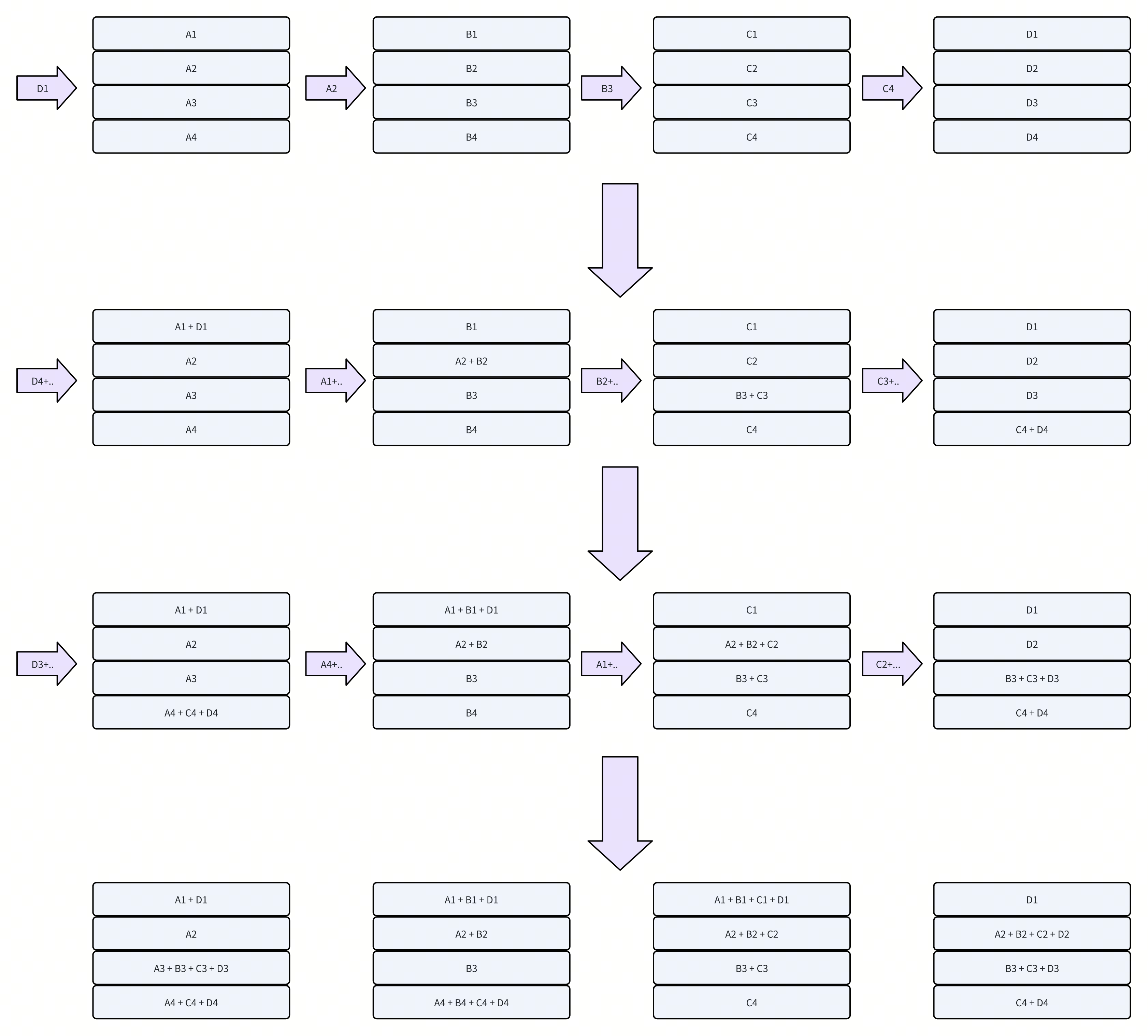 对于RS来说,每个rank最终的输出为 S / n,要收集来自其他rank的对应的数据