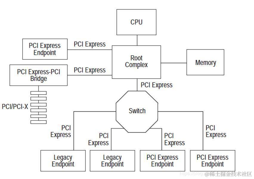 拓扑结构如下,这里的PCIE endpoint就是接入的各种设备(主板上看的那些插槽)