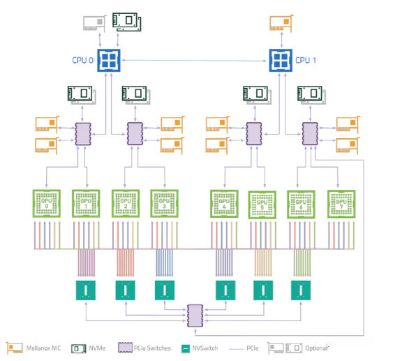 * 也可能是PCIe switch不够一下挂8个卡,因为这里需要用GPUDirect RDMA